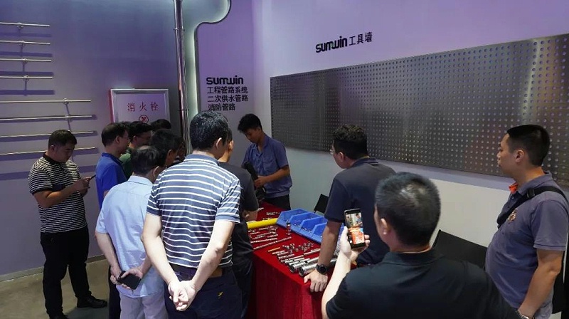 座談會(huì)前,廣西土木建筑學(xué)會(huì)給水排水專業(yè)委員會(huì)協(xié)會(huì)領(lǐng)導(dǎo)及嘉賓興致勃勃的參觀了雙興集團(tuán)研發(fā)中心,實(shí)地了解了公司的發(fā)展歷程,不銹鋼水管、管件等產(chǎn)品的整體系統(tǒng)。 對(duì)現(xiàn)場(chǎng)施工卡壓式操作、不銹鋼水管在二次供水的未來發(fā)展趨勢(shì)產(chǎn)生了濃厚的興趣。